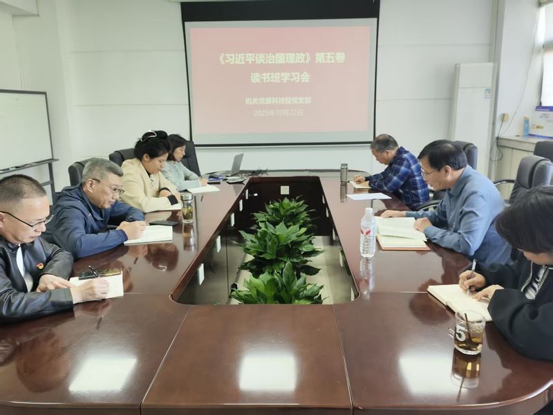 2025年10月22日,科技园支部在七楼会议室开展《习近平谈治国理政》第五卷学习。会议重点学习了《谱写新时代中国宪法实践新篇章》《坚持好、完善好、运行好人民代表大会制度》《加快建设文化强国》《从中华民族整体利益和长远发展把握两岸关系大局》等篇章。全体党员、干部参加,学习活动由支部书记胡学忠、支部副书记王立辉领学。